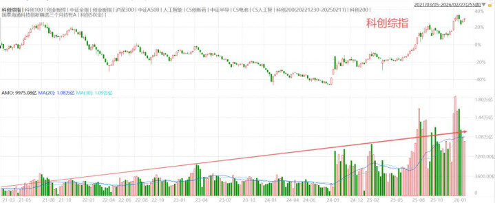 下图是近5年科创综指的周度成交额,20周平均为1.08万亿,总市值10.58万亿。